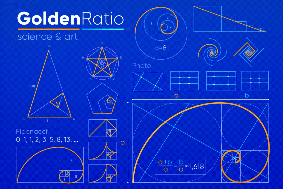 The golden ratio (approximately 1:1.618) appears everywhere in art and nature, creating pleasing, balanced compositions.