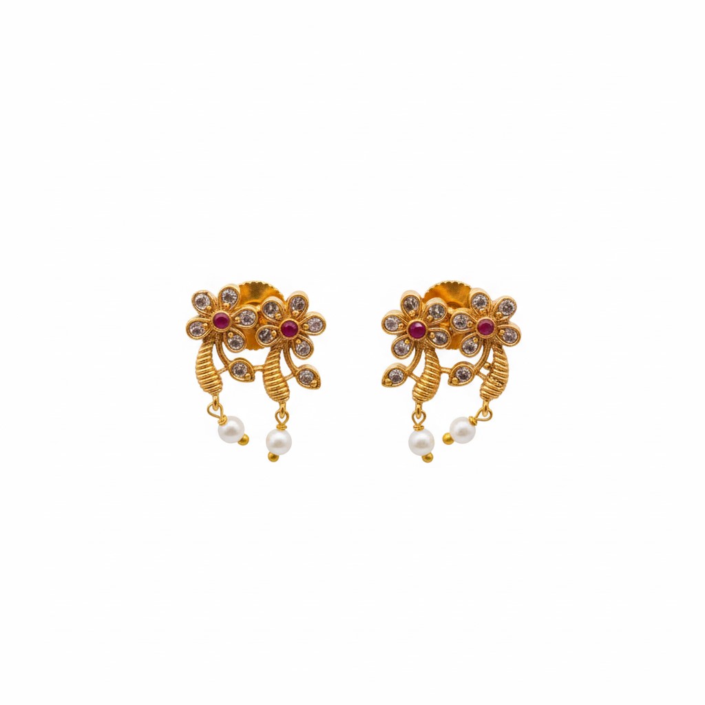 A beautifully handcrafted traditional flower necklace set for modern queens crafted in antique micro gold plated brass with CZ stones and pearls. Complete with matching stud earrings, it adds effortless elegance to festive and party looks.