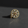 The Regalia Kundan Ring embodies heritage and sophistication. Crafted in durable brass, it showcases intricate kundan artistry enhanced by shimmering dublate accents, blending traditional craftsmanship with modern charm. Its circular, regal design makes it an ideal accessory for festivals, weddings, and special occasions.