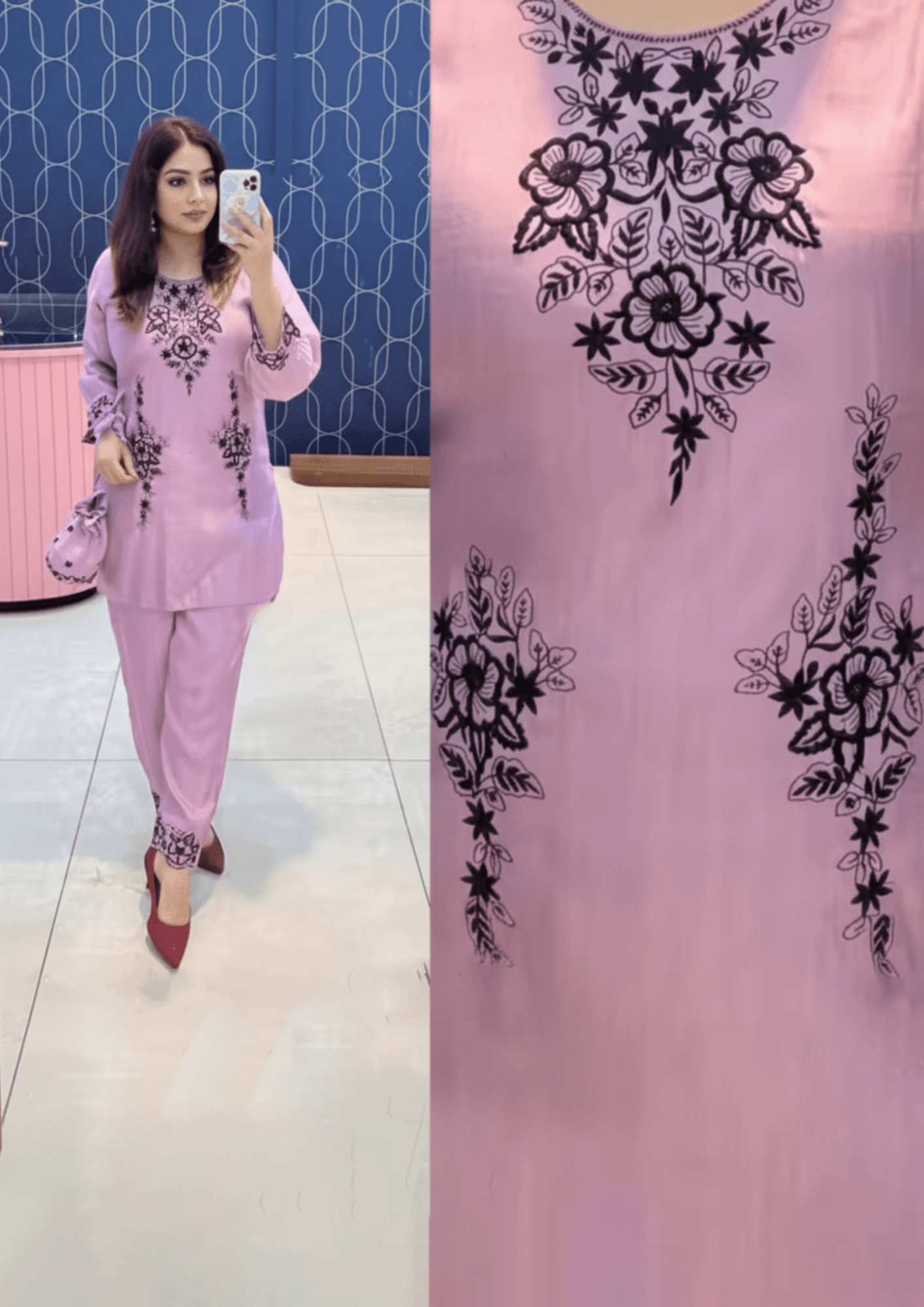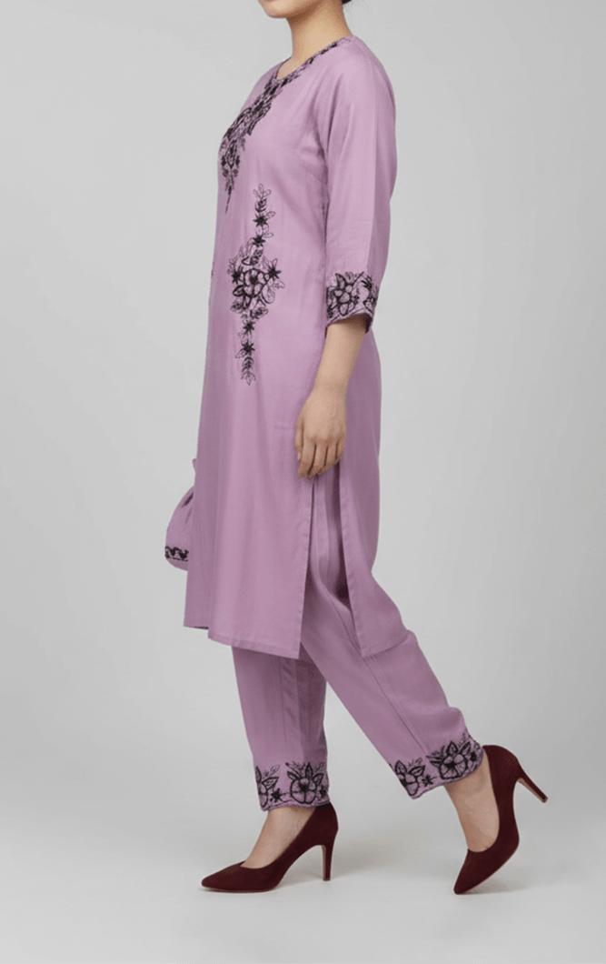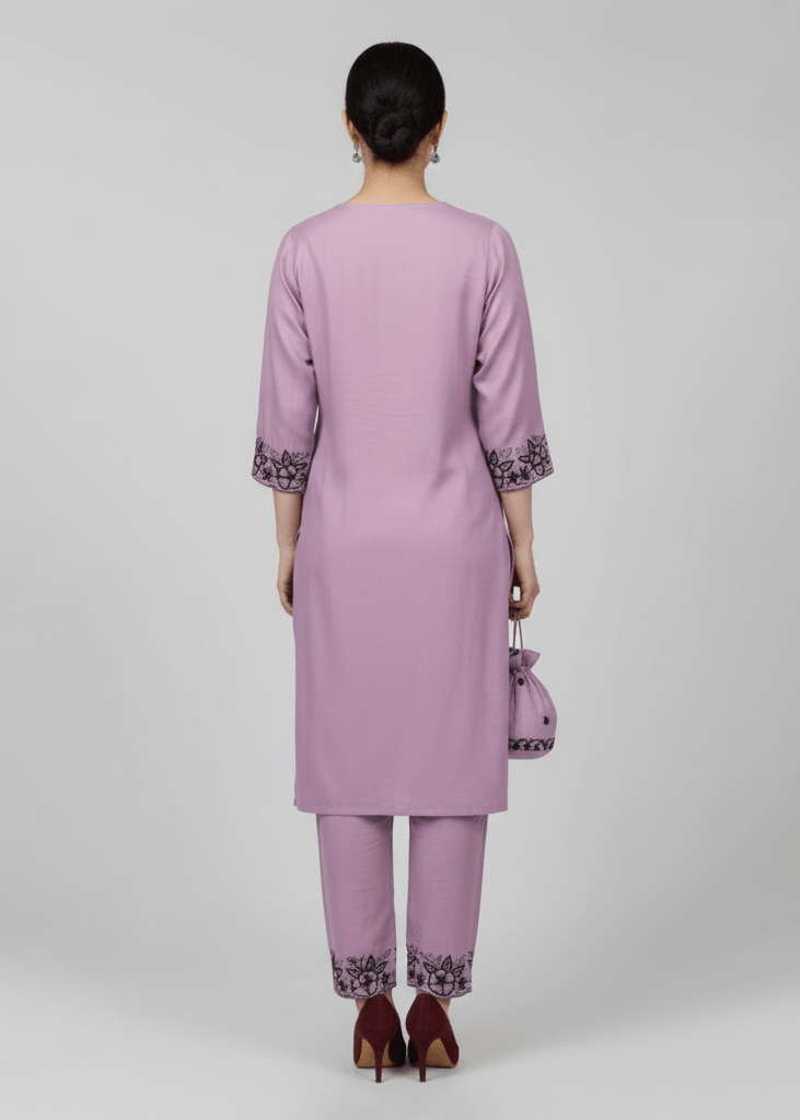 comfort and effortless elegance with this rayon kurta and pyjama set. The beautifully embroidered